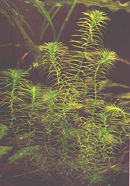 die Wasserpest-Art (Elodea) erinnert. Diese kleine Stengelpflanze ist sehr
