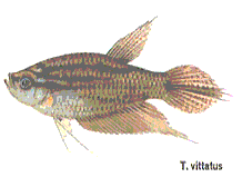 Im Juni 1900 führte Hans Stüve, Hamburg, ein Fischchen aus Hinterindien ein, daß selbst den höchsten Anforderungen der durch die letzten Importe stark verwöhnten Aquarienfreunde voll und ganz gerecht werden dürfte, sowohl was Farbenschönheit, als auch was Originalität des Aussehens und interessante Lebensweise anbetrifft. Die Redensart "stumm wie ein Fisch" wird durch Ctenops vittatus ad absurdum geführt, denn zur Zeit der Minne begnügt sich das Männchen nicht mit dem lautlosen Instreffenführen seiner körperlichen Vorzüge, sondern sucht durch deutlich wahrnehmbare Knurrtöne auch hörbar seine Zuneigung zum Ausdruck zu bringen. Überhaupt erweist sich Ctenops vittatus als überaus galanter Ehemann, der niemals die dem zarteren Geschlechte schuldige Rücksicht außer acht läßt, jedoch gegen seine Geschlechtsgenossen ein sehr unverträgliches Wesen zur Schau trägt, dabei an Mut und Todesverachtung den Kampffisch weitaus übertreffend. Der Kampf der Männchen untereinander endet meist mit dem Tode des einen Teils, oft zahlt aber auch der Sieger seinen Erfolg mit dem Leben, wenigstens mit der Einbuße eines Teils seiner Flossenpracht. Die gefällige Färbung, Rücken olivgrün, Seiten gelblichbraun, Unterseite weißlich, wird durch drei schwarze Längsstreifen, die in der Intensivität der Färbung häufig wechseln, manchmal kaum wahrnehmbar sind, wesentlich gehoben. Das Flossenwerk ist durchgehends, auf hellerem Untergrunde, dunkelbraun getüpfelt. Der Kopf ist länglich; die Kiefer des spitz zulaufenden Mundes sind mit kleinen Zähnchen versehen. Das ungewöhnlich große Auge erstrahlt in leuchtend grüner Farbe. Seitlich ist der zartbeschuppte Körper stark zusammengedrückt. Die abgerundete Schwanzflosse nimmt fast ein viertel der Schwanzflosse ein, die in einer Spitze endende Afterflosse reicht bis über die Mitte der Schwanzflosse hinaus, die Rückenflosse hat eine geringere Basisausdehnung, ist nahe der Schwanzflosse angesetzt und endet gleichfalls in eine zierliche Spitze. Die Brustflossen sind klein, die Bauchflossen hingegen gut entwickelt. Das Weibchen ist matter in der Farbe. Die temperatur des Wasserssoll nicht unter 20° C sinken, reiche Bepflanzung, Sonnenschein und Altwasser sind Hauptbedingungen. Als Nahrung kommt ausschließlich animalisches Futter in Betracht, Daphnien, chabefleisch,Regenwürmer etc.; besonders letztere sollen nach P. Arnolds, Hamburg, Angaben gerne genommen und jedem andern Futter vorgezogen werden. Gleich dem stammverwandten Makropoden baut Ctenops vittatus, wenn möglich unter einem Blatte, ein Schaumnest, jedoch mit viel wenigen Sorgfalt und Ausdauer, auch besteht dasselbe nur aus wenigen großen Schaumblasen, die manchmal sogar einen Durchmesser von 1 cm erreichen, jedoch leicht zergehen und nichts als eine schaumige Masse auf dem Wasser zurücklassen. Nach erfolgtem Nestbau wird das Weibchen vom Männchen unter Liebesspielen und deutlich hörbarem Geknurre sanft unter das Nest gedrängt. Kopfaufwärts stehen beide eine Weile unter dem Nest. Plötzlich biegt das Männchen den Körper leicht nach dem Weibchen, die weißen Eier treten heraus, werden vom Männchen befruchtet, aufgefangen und ins Nest getragen. Die Jungen schlüpfen bei einer Temperatur von 24 - 30° C nach ca. 48 Stunden aus, hängen anfangs mit dem Schwanz nach untem im Nest und nehmen in ca. 2 Tagen eine waagerechte Lage an. Nach Mitteilung des Herrn Paul Schäme, Dresden, nehmen die jungen Fische die Pflege der Elterntiere lange in Anspruch und werden von letzteren, sobald Gefahr droht, sofort in ein anderes eilig erbautes Nest übertragen. Die alten Tiere scheinen ihre Jungen nicht aufzufressen, und empfiehlt der obengenannte Züchter, die Brut der Pflege der Alten zu überlassen, da er dabei bessere Erfahrungen gemacht hat, als wenn er sie getrennt aufzog. Ctenops vittatus ist gegen Druck und Temperaturwechsel ungemein empfindlich, jedoch läßt sich hoffen, daß auch dieser Fisch mit der Zeit widerstandsfähiger wird.Herr Paul Schäme, Dresden, hat diesen Fisch bereits mit gutem Erfolge zur Fortpflanzung gebracht und auch in Zimmerqauarien hat sich derselbe bereits züchten lassen, so daß mit Recht geschlossen werden kann, daß Ctenops vittatus in Kürze um billigeren Preis als bis jetzt zu erhalten sein wird.