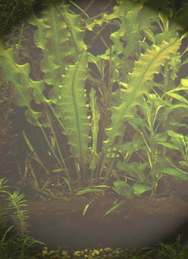 Die " Crispus" ist wohl die häufigste Wasserähre, die im Aquarium anzutreffen ist. Sie ist unproblematisch in der Haltung. Da sich die Pflanze mit der Zeit im Wachstum erschöpft, sind Ruheperioden wichtig, man nimmt die Pflanze aus dem Aquarium und bewahrt sie kühler auf. Nach einer Ruhepause wird die "Crispus" wieder ein- gepflanzt und sie wird sich wieder zu einer kräftigen Pflanze entwickeln. |