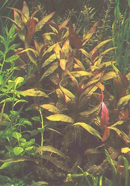 Infolge geringerer Beleuchtung verblassen die hübschen Rottöne dieser Aquarienpflanzen.