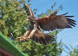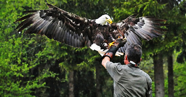 Ein besonderes Erlebnis für Jung und Alt sind die täglichen zwei Greifvogel-Flugvorführungen mit Adlern, Falken und Eulen