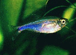 Boehlkia fredcochui wurde zusammen mit der Gattung von Gery (1966) erstbeschrieben. Die Gattung ist bis heute monotypisch geblieben, wenngleich Gery (1977) die Frage offen läßt, ob die von Boehlke 1958 als hemibrycon orcesi beschriebene Art wegen der ebenfalls beschuppten Schwanzflosse nicht auch der Gattung Boehlkea anzuschließen sein. Der Cochius Salmler wird etwa 4 cm lang. Er stammt vom oberen Amazonas und zwar genau von der Einmündung des Rio Maranon in Peru über Iquitos bis in die Umgebung von Leticia am südlichen Zipfel von Kolumbien, von wo aus er zumeist importiert wird. Anderseits gibt es leichte farbliche Unterschiede zwischen den Leticia - Importen und denen aus Lima, die aus Peruanischen Gewässern stammen. Geschlechtliche Unterschiede sind nicht leicht festzustellen, wenn man davon absieht, daß die Weibchen etwas rundlicher ausfallen. Boehlkia fredcochui liebt ein Leben im Schwarm, der aber nicht zu groß sein muß; dazu ein nicht zu hell eingerichtetes Aquarium mit sehr weichem, kräftig saurem und möglichst nitratarmen Wasser. Ist das Aquarium zu hellbeleuchtet, so kommen die Farben nicht voll zur Geltung! Deshalb allein lohnt sich der Eintrag von Schwimmpflanzen. Torffilterung, dunkler Bodengrund und gedämpftes Licht lassen diesen herrlichen Fisch in seinen Farben so richtig zur Geltung kommen. Der Cochus- Salmler kann sehr sehr lebhaft sein, auch wenn er von Zeit zu Zeit eine Ruhepause einlegt und dann unter nach oben hin schützenden Blättern steht. Bei der Nahrungsaufnahme erweisen sich die Fischchen als problemlos: Flockenfutter wird ebenso genommen wie Mückenlarven, Nauplien oder tiefgekühlte Adulttiere von Artemia, Wasserflöhe usw., wobei natürlich der fleischlichen Nahrung meistens der Vorrang gegeben wird. Die Zucht kann nur mit besonderen Vorsichtsmaßnahmen erfolgreich sein, weil die Freilaicher zu den starken Laichräubern zählen. Der Blaue Perusalmler ist sehr selten in den Becken der Zoohändler anzutreffen. Bei der Ausstellung unseres Vereins im Herbst werde ich diesen sehr schönen Fisch den Besuchern zeigen können.